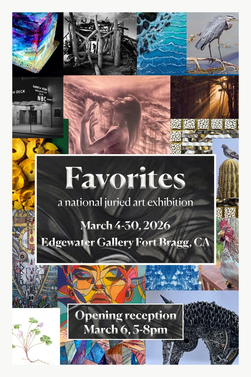 We invite you to explore our ever-evolving exhibits, participate in our monthly "Edgewater Welcomes" program for emerging artists, or simply enjoy the rich tapestry of local artistry that defines our gallery. Whether you're a seasoned collector or a curious traveler, Edgewater Gallery offers a warm welcome and a unique glimpse into the creative soul of Fort Bragg.